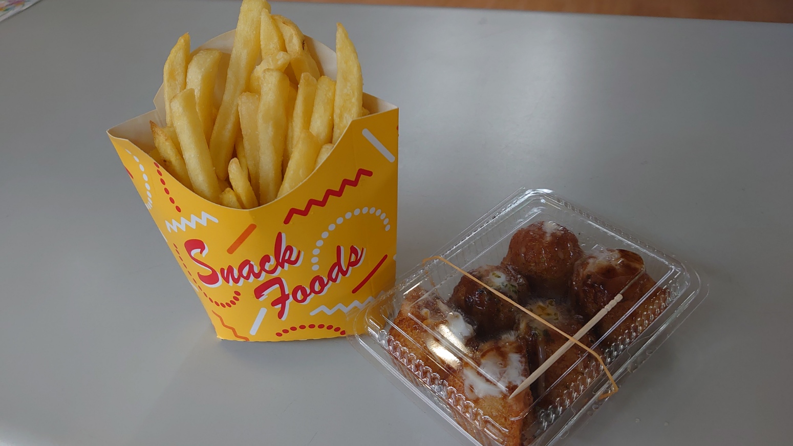 揚げたこやき(300円)、フライドポテト(200円)とお値段も良心的!